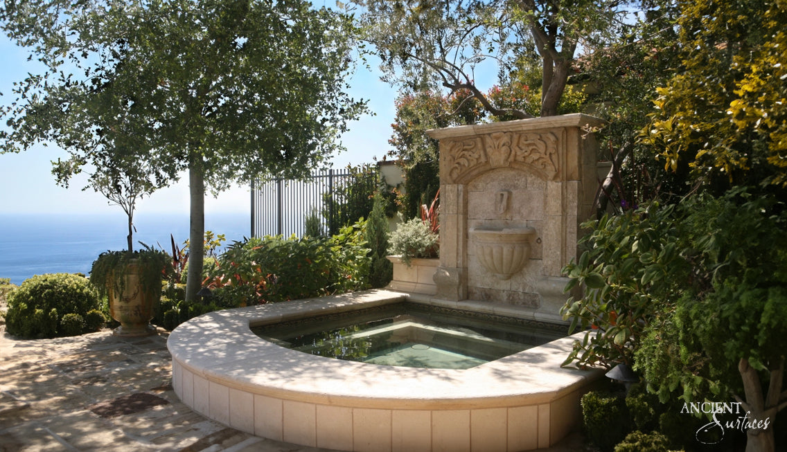 Mediterranean Oasis: Handcrafted Limestone Wall Fountain